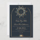 This design features navy blue and golden celestial art including bohemian linear wavy sun logo and arch frame personalised wedding invitation. This product can be easily personalised. If you need help with the customisation of the product or need matching products kindly please contact me via Zazzle.