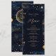 Elevate your reception tables with this elegant celestial wedding menu card, featuring a deep navy blue background, delicate gold celestial accents, and a coordinated monogram on the back for a refined, cohesive look.