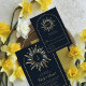 This design features navy blue and golden celestial art including bohemian linear wavy sun monogram personalised wedding response card. This product can be easily personalised. If you need help with the customisation of the product or need matching products kindly please contact me via Zazzle.