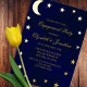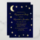 Night sky engagement party with gold moon and stars