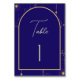 Celestial Night Sky Navy Blue and Gold Wedding. Blue and gold celestial wedding table number with customisable text. This dark and moody design is perfect for a night under the stars wedding theme or an indigo wedding.