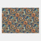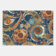Celestial Paisley Pattern Navy Blue, Orange, Gold Wrapping Paper Sheet