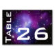 Add a table number to a space image of a blue and purple galaxy cluster. Create your own celestial wedding table numbers. You can customise the font style to match your other designs.