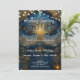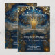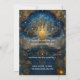 Surrounding the tree are intricate forms reminiscent of cosmic architecture—patterns, celestial bodies, and flowing designs that suggest a gateway between dimensions. The deep blues of the night sky contrast with the warm golden glow of the tree, symbolising the meeting of mystery and illumination, stillness and awakening.