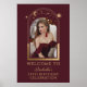 Celestial Red Gold 30th Birthday Welcome Poster features an elegant gold sun, moon and stars frame on a deep pink-red background. Inside is your favourite photo and below your birthday welcome sign information. Personalise by editing the text in the text boxes and adding your favourite photo. Designed for you by ©2024 Evco Studio www.zazzle.com/store/evcostudio