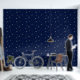 Let your child's imagination to fly with this celestial wallpaper that features beautiful stars and planets! The space is waiting! This colourful cosmos design with a deep blue background is perfect for nurseries, kids room or playrooms.