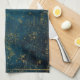 A vintage look celestial star map, constellation, galaxy in gold on a blue green background.