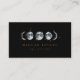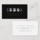 Celestial moon phase in navy blue watercolor, professional business cards. Cards feature painted moon phase in navy blue adorned with golden stars, background on front shown in, coordinating black, can be customised.
