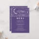 Starry night and crescent moon purple and silver wedding menu cards