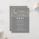Starry night and crescent moon grey and gold wedding menu cards