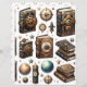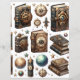 Double-sided scrapbook paper featuring celestial steampunk cut and collage cardstock designs with books and ephemera and matching backgrounds to help you with your paper crafting projects. Perfect for all types of papercraft from scrapbooking and junk journalling to decoupage and collage.