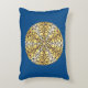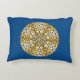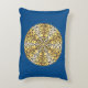 A lace-like concentric circle mandala in dark blue with bright blue and gold star-like dots spangled among the layers and a bright sunburst gradient circle behind makes for a fun design that brings to mind a starry night sky and a bright sunny day with one image.