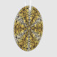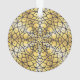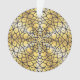 A lace-like mandala in dark blue with bright blue and gold stars and a bright sunburst gradient circle behind makes for a fun, design that brings to mind a night sky and sunny day with one image.