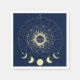 Elevate your table setting with our paper napkin from the Celestial Sun Moon Phases Zodiac Collection. Against a backdrop of deep navy blue, reminiscent of the tranquil night sky, this napkin features a striking design centred around a luminous golden sun. Surrounding the sun are the twelve signs of the zodiac, each intricately detailed with its corresponding constellation, creating a mesmerising celestial display.