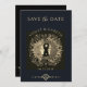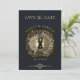 This mystical save the date announcement feature a striking illustration of a serene, yet powerful Sun and Moon, their faces intertwined in harmony. The design is adorned with intricate, flourishes both in the imagery and the typography. An ethereal style for the event.