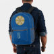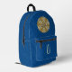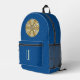 A lace-like concentric circle mandala in dark blue with bright blue and gold star-like dots spangled among the layers and a bright sunburst gradient circle behind makes for a fun design that brings to mind a starry night sky and a bright sunny day with one image. Customise the initial on the front pouch of this backpack with your own monogram to make this accessory uniquely yours.
