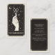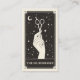 This business card features a tarot card style design in a black and cream colour palette. The illustration shows a hand holding hairdressing scissors surrounded by twinkling stars. This would be perfect for any hairdresser or stylist who prefers an alternative style business card and wants to make their business card memorable.