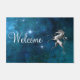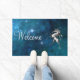 Beautiful vintage heraldry style unicorn illustration set on celestial skies background. Customise with name or other text in white script font.