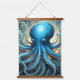 Celestial Waves: The Blue Octopus Fractal Art Hanging Tapestry
