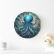 Celestial Waves: The Blue Octopus Fractal Art Large Clock