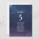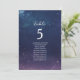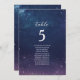 Help your guests find their seats in cosmic style with this elegant celestial wedding seating chart card. Featuring a dreamy navy and violet starry night sky background, this double-sided card displays a table number and guest list in a clean, stylish layout. Perfect for stargazing, night-sky, or romantic celestial wedding themes. Easily customise the table numbers and names to match your seating plan and create a magical, coordinated look for your reception tables.