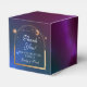 Celestial Purple Teal Gold Sun Moon Astronomy Wedding Favour Boxes features an elegant gold sun, moon and stars with a golden frame on a purple and teal night sky background. Inside is your custom wedding thank you information. Designed by Evco Studio www.zazzle.com/store/evcostudio