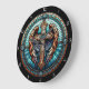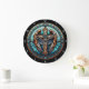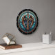 This exquisite wall clock features a captivating stained glass design of a majestic cross with gracefully outstretched, multi-hued wings. The intricate details and radiant spectrum of blues, oranges, and purples create a powerful and serene focal point, perfect for adding a touch of faith and spiritual beauty to any home or sacred space. Edit colour of the clocks numbers in the Design tool to your favored colours.
