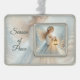 I wanted a custom ornament to honor a very special furry family member that passed away. He liked to sit under the Christmas tree and ring the bell on it. We changed the "Every time a bell rings" saying to his breed and said it every time he rang the bell. This turned out great. His picture is very clear and it looks absolutely gorgeous. It looks so good, I'm thinking of leaving it out year round and found a stand to hang it from. I would definitely order this again. This looks great! The picture of the complete ornament doesn't do it justice.