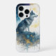 Protect your new iPhone 16 Pro with this stunning watercolor masterpiece. Featuring a majestic wolf silhouette gazing at a luminous full moon, this case blends ethereal blue tones with delicate gold filigree accents and shimmering stars.