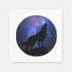 Paper party napkins feature a black howling wolf silhouette on round celestial background
