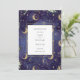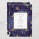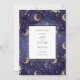 A beautiful celestial wedding save the date card featuring gold, moons and stars and special photo on the reverse with a midnight blue background and modern elegant typography. Designed by Thisisnotme©