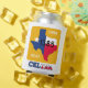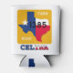 Can cooler designed for Celina, Texas, farm to market rd 1385 and the iconic Texas longhorn.  Red, white and blue colours throughout, for the patriotic look.