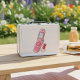 This is a standard metal lunchbox that appears to work just fine. We designed this box ourselves with an uploaded photo and custom text on the front and back. It looks absolutely beautiful except the front of the lunchbox is not centered like it shows in the photo. The print borders don't align with the inset flat part of the box where the preview photo online showed it perfectly centered in there. The back looks nice and centered though.