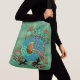 A beautiful tote bag design with this aqua peacock and knot with a matching pattern on backside.