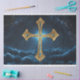 decoupage paper, large decoupage , celtic, cross, blue, gold, tissue paper, decoupage paper, large furniture decoupage, Ephemera, Cross tissue paper, decoupage tissue paper.