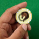 Brown horse side profile with tribal celtic knot work circle in a backdrop of yellow
