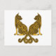 Two seated cats with their tails entwined, rendered in celtic knotwork in gold and bronze