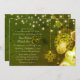 This enchanting wedding invitation features a beautiful Celtic design with charming clovers and string lights on a green background. -
