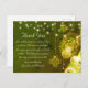 This enchanting wedding thank you postcard features a beautiful Celtic design with a charming clover and string lights on a green background. - Thank you text - "Thank You for celebrating our special day with us! We are so grateful for your generous gift and well wishes. We hope you enjoyed the day as much as we did. love and thanks, <Names>" - The thank you text can be personalised to read as you wish.