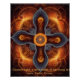 Overall, the image evokes themes of energy, spirituality, and cosmic balance, with a mystical, ethereal quality to the abstract design. The blending of warm and cool colours adds depth and contrast, enhancing the visual impact of the piece.