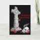 Celtic Cross and Raven Christmas Card, with a Raven on a skull, roses around, Celtic Cross, and seasonal greeting. Smaller raven and skull inside with coloured roses and Christmas greeting. This card is available without words too.