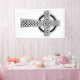 This design features a Celtic cross, which is a form of Christian cross featuring a ring (or nimbus) that emerged in Ireland, France and Great Britain in the Early Middle Ages. it became widespread through its use in stone high crosses, especially in regions evangelised by Irish missionaries, from the 9th through the 12th centuries. The form gained new popularity during the Celtic Revival of the 19th century. The Celtic cross is now appreciated around the world.