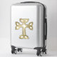 The stick looks amazing. Unfortunately, it would not stick on our suitcase as it was textured. When we found a non-textured (smooth) suitcase, the sticker stuck and looks great. The printing looked awesome.