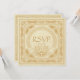 This Celtic design with Claddagh wedding RSVP card features Celtic interlacing animal motifs on the outside front border and corners surrounding the traditional Irish Claddagh ring with the hands holding a heart (of Celtic spiral designs) with a crown symbolising friendship (hands), love (heart), and loyalty (crown). The ring is completed with traditional Celtic knot work. The background texture is derived from an ancient mediaeval manuscript. The back also features this mediaeval background texture and also has a border of Celtic knots in classic gold.