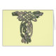 From the Lindisfarne Gospels - Two doglike creatures entwined in a traditional Celtic knotwork design, textured in shades of mottled green and grey.