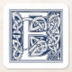 These 6 paper coasters feature a decorative celtic letter E illuminated with grey dragon heads on a velvety dark blue background.