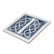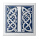 This tile features a beautiful, decorative embossed celtic letter I illuminated with grey dragon heads on a velvety dark blue background.