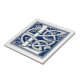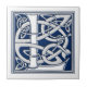 This tile features a beautiful, decorative embossed celtic letter L illuminated with grey dragon heads on a velvety dark blue background.