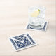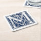 These 6 paper coasters feature a decorative celtic letter M illuminated with grey dragon heads on a velvety dark blue background.