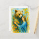 A druidess gently rests against a powerful bear, surrounded by golden leaves and spiritual warmth. Watercolor fantasy portrait with natural magic.